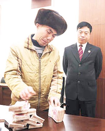胥敬祥领取国家赔偿金时,禁不住热泪盈眶。  赵国勤摄
