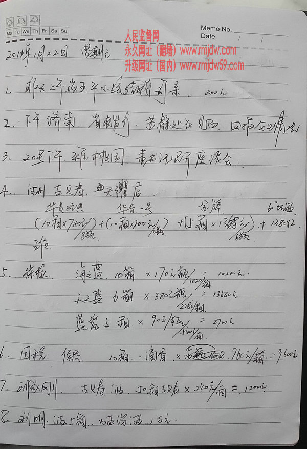 山东照东方纸业集团旗下山东德州福源生物淀粉有限公司总经理,张雷达行贿日记近20本,涉及党政、国企、银行、公检法等各大机构;而行贿手段也花样百出,有送现金、烟酒、银行卡、购物卡、轿车、房产,有请境外旅游、红白喜事随礼、给贷款回扣。现公布第一季,海量日记陆续公布。