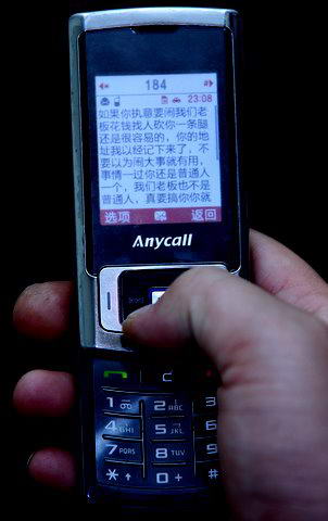“如果你执意要闹我们老板花钱找人砍你一条腿还是很容易的,你的地址我已经记下来了,不要以为闹大事就有用,事情一过你还是普通人一个,我们老板也不是普通人,真要搞你你就是告到哪都没用,希望你好好考虑一下,另外不要试图知道我是谁我也是受人之托。”