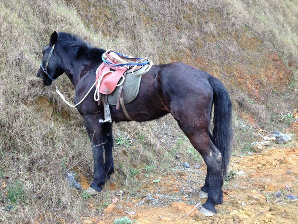 2015年2月18日,农历大年三十,我到达贵州省瓮安县草堂镇,住进了一家客店,马拴在了离客店二百米的荒地里。