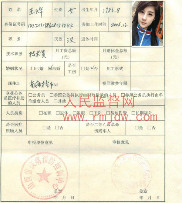 我单位招收职工的最低要求是,大学本科、专业对口、英语六级。而王烨其人, 86年出生(142201198608051444),06年12月就是我单位正式职工了,只有20岁,哪有文凭,更不要讲专业和外语水平了,栗文元还给了她一个技术员职务。