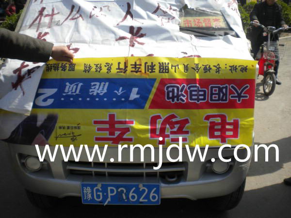 人民监督网网讯:自2010年3月31日起,一辆遮挡着车牌号的“市场督察”面包车,始终停放在河南省长垣县金贝山商业街的中段。不少群众告诉记者,这是河南省长垣县市场发展局执法人员在殴打商户时被该商户拦阻的执法车。