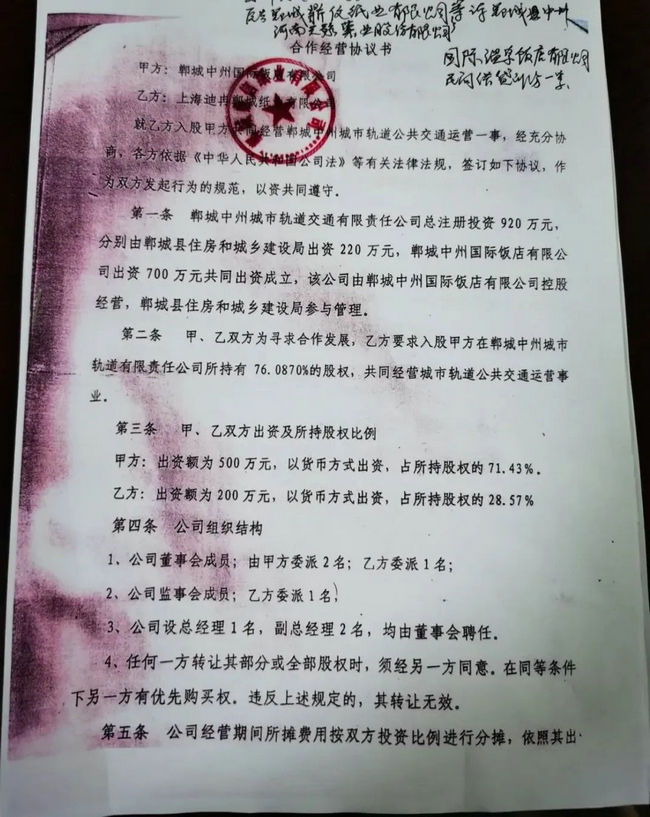 时任郸城县政府副县长的吕振龙的笔录也显示,县委县政府当时与几家企业沟通,最后确定由财鑫集团、天豫粉业、迪冉药业三家企业每家出资二百万元,申宗奎的中州酒店出资一百万元,四家企业共计七百万,通过中州城市轨道有限公司打入政府财政。这些官员对这个项目背景的陈述,可是都白纸黑字地记录在郸城县公安局的卷宗内,并公开在此后的诉讼中。