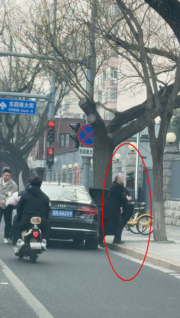 图九:阎红革手拿礼品乘坐驻京办黑色红旗轿车(京LJW126)回家