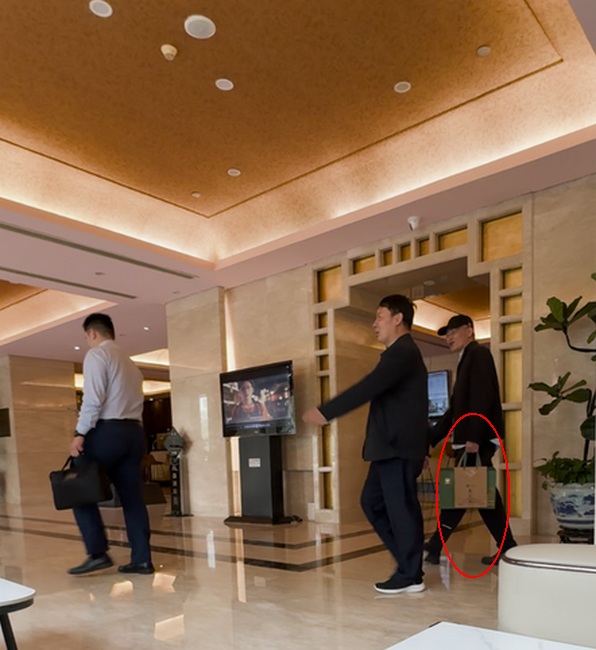 图七:宴请行贿者携带拟送给阎红革的礼品离开卧龙厅